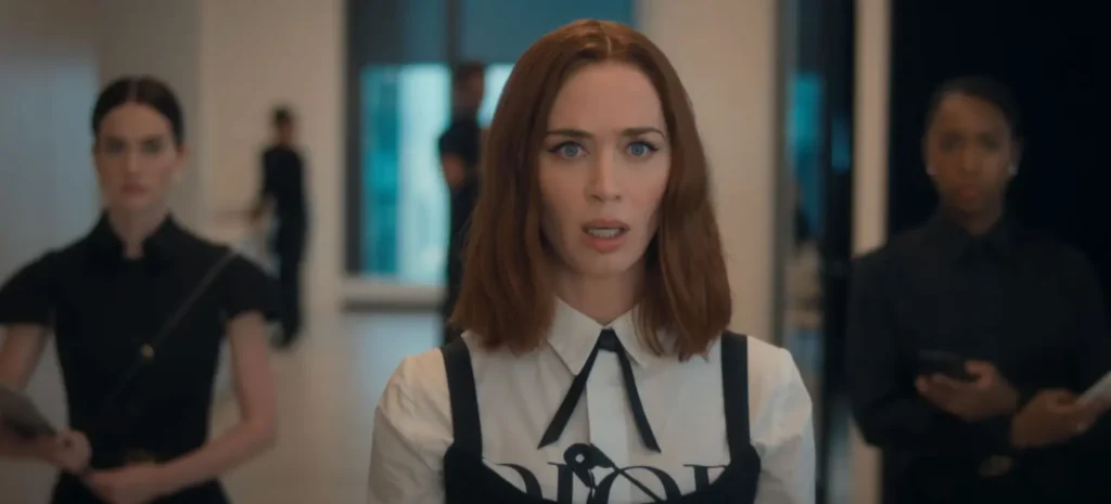 El momento ocurrió durante una toma en la que el personaje de Andy Sachs, interpretado por Anne Hathaway, cruza una calle en la ciudad de Nueva York. En la escena, la protagonista aparece vestida con un elegante traje gris oscuro, botas negras y gafas de sol grandes, caminando con seguridad entre el tráfico de la ciudad.